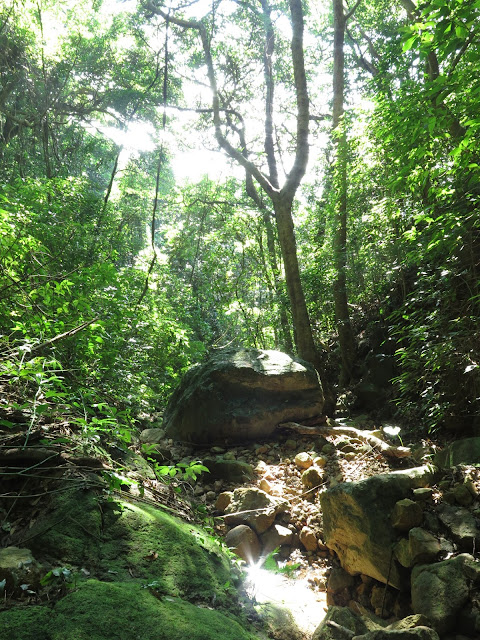 幾經辛苦才綑過水溢的「石壁水塘」邊至盛夏難以進入的「閻王坑」水塘澗口: