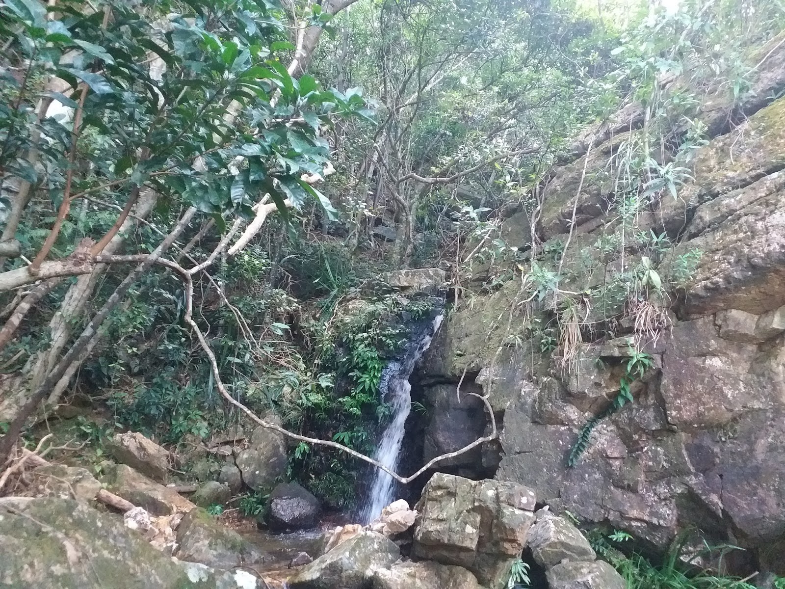 此支源本來當作出入「大藍湖石澗」的甬道,沒甚麼期待。然今日一探,發覺入口的一連串瀑流,兩三個要正面突破的濕瀑,期後更進入兩壁互峙的峽位,使人驚訝。此澗由於以上的幾個瀑壁較陡,故最好以上溯方式探遊。